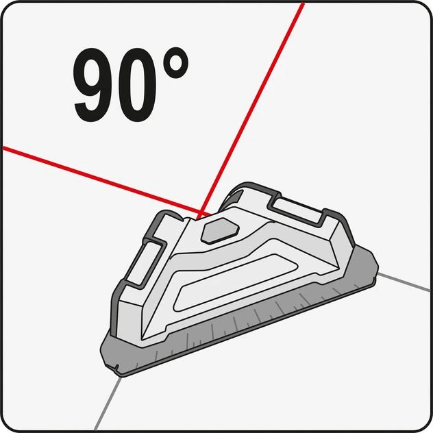 Линейный лазер предназначен для облицовки плиткой, ремонта и строительства, отделки и т. д. Он излучает две красные, хорошо видимые линии, точно обозначающие угол 90.