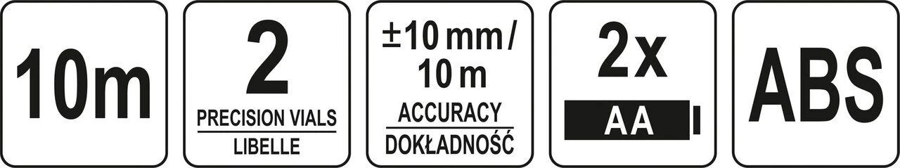 YATO Рівень лазерний для укладання плитки: діап.- 10м,+/-1мм, кут-90°, 2 лазера, 2 капсули, 2 x AA