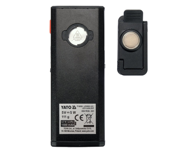 YATO Ліхтар світлодіодний акумул. YATO Li-Po 3.7 В, 500 Lm, функ. павербанк на 1500 mАГод | YT-08556