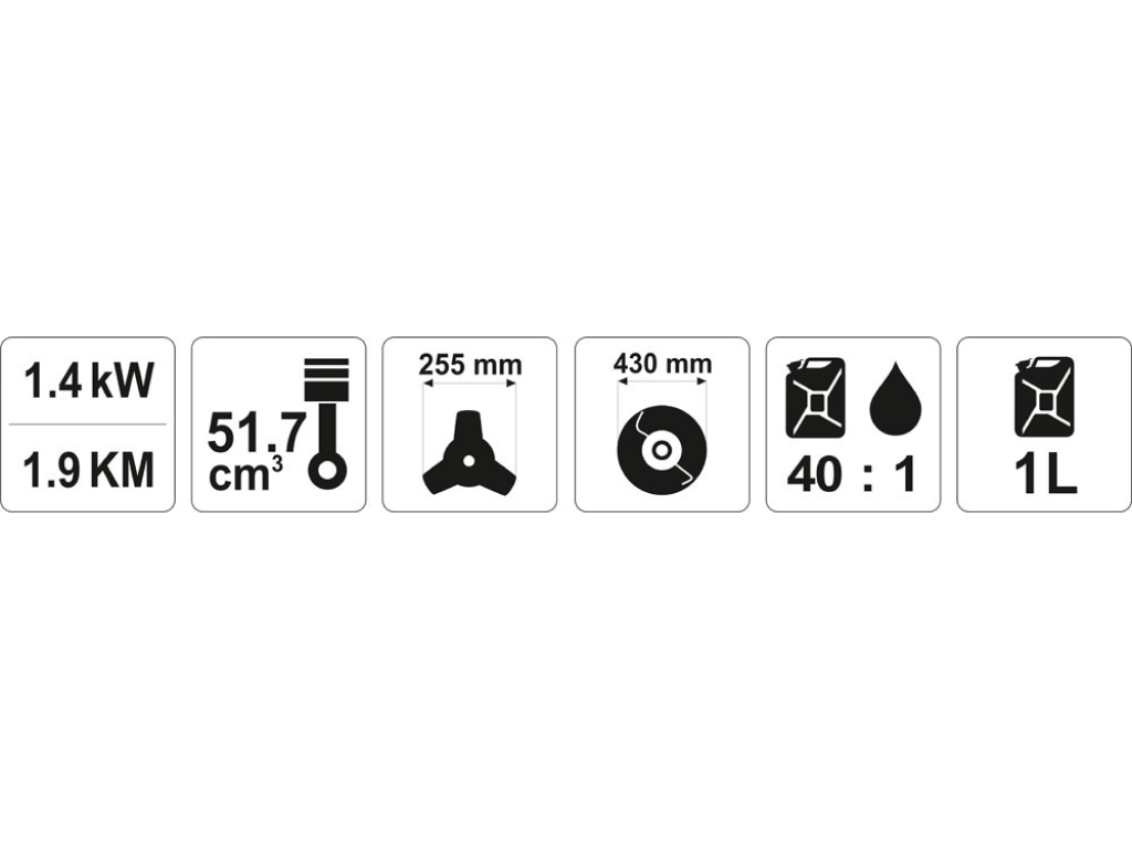 YATO Бензокосарка YATO: 42,7 см³, 1,25 кВт. обрізна зона: жилкою Ø= 430мм, диском Ø= 255мм, бак- 0,85 л | YT-84995