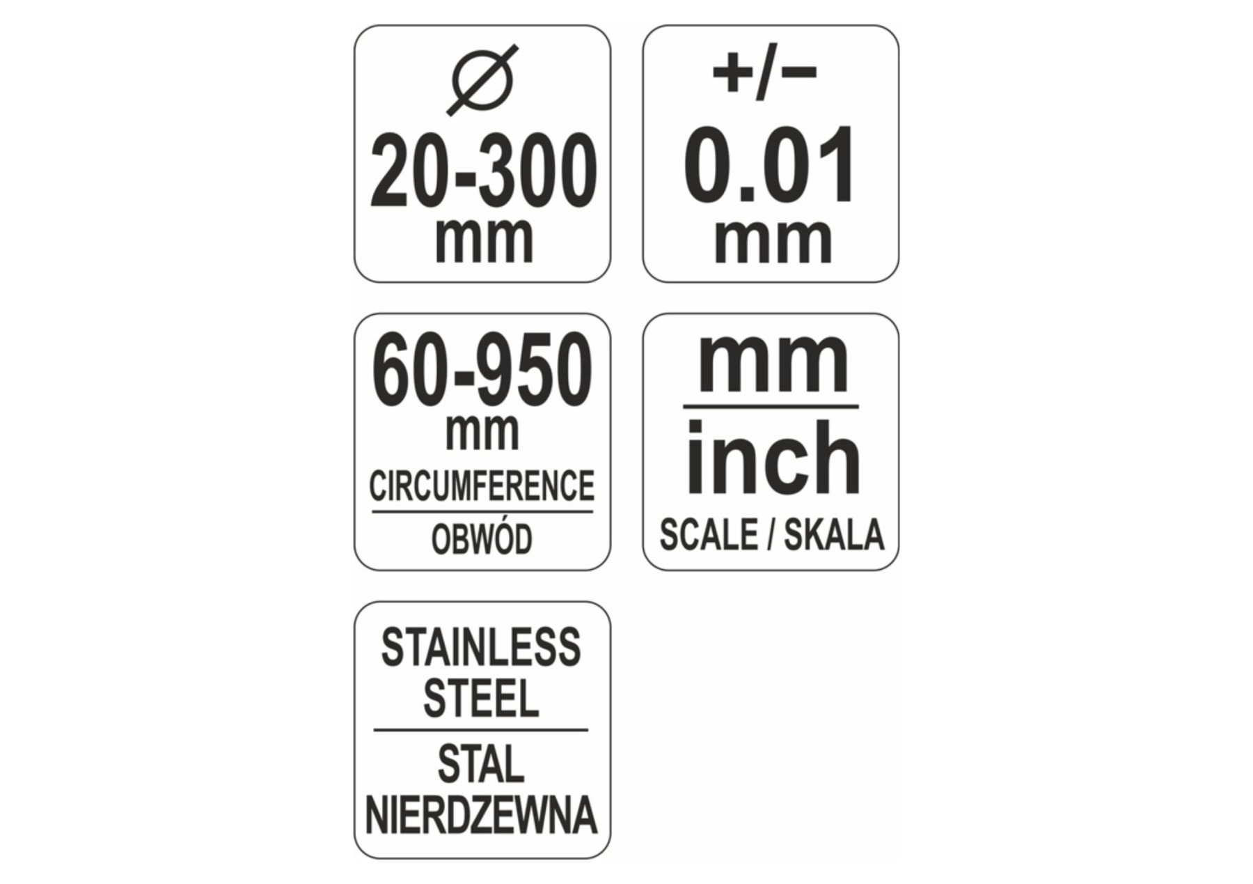 YATO Циркометр для кола- 60-950 мм і діаметра 20-300 мм YATO з метр. і дюйм. шкалами, стал | YT-71700