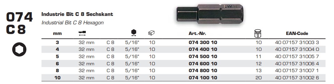 Бита FELO ( ФЕЛО ) SW6х32 мм, 5/16, C 8