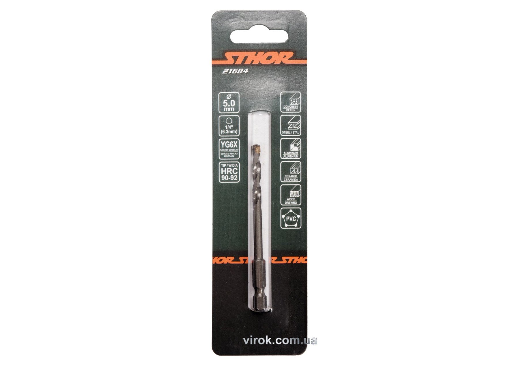 STHOR Свердло універсальне : YG6X, з 6-гран. хвостовиком-1/4", Ø= 5 мм, l= 85/35 мм | 21684