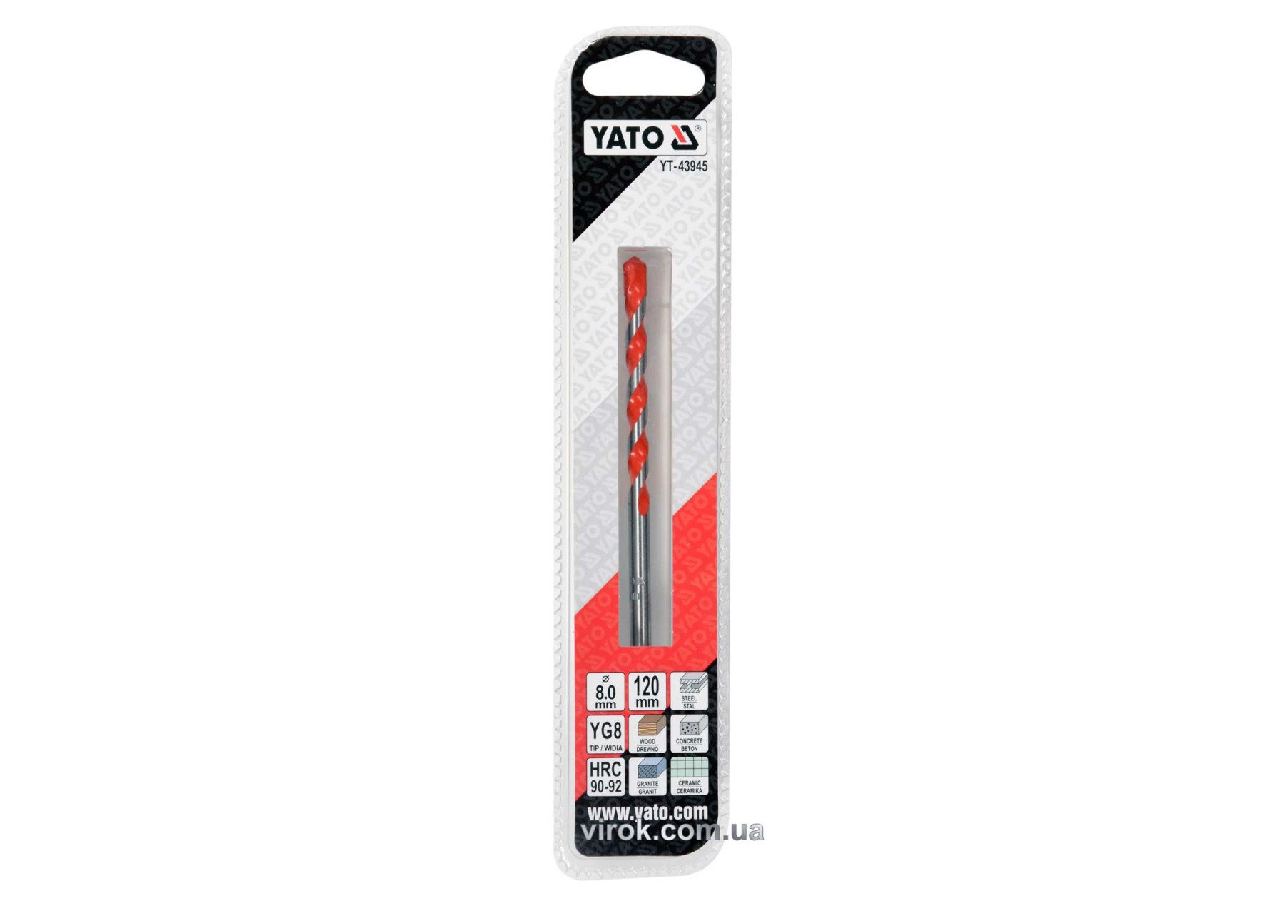 Свердло універсальне YATO YT-43945 призначене для свердління в матеріалах (бетон, кераміка, залізобетон, граніт), а також в дереві та металі.