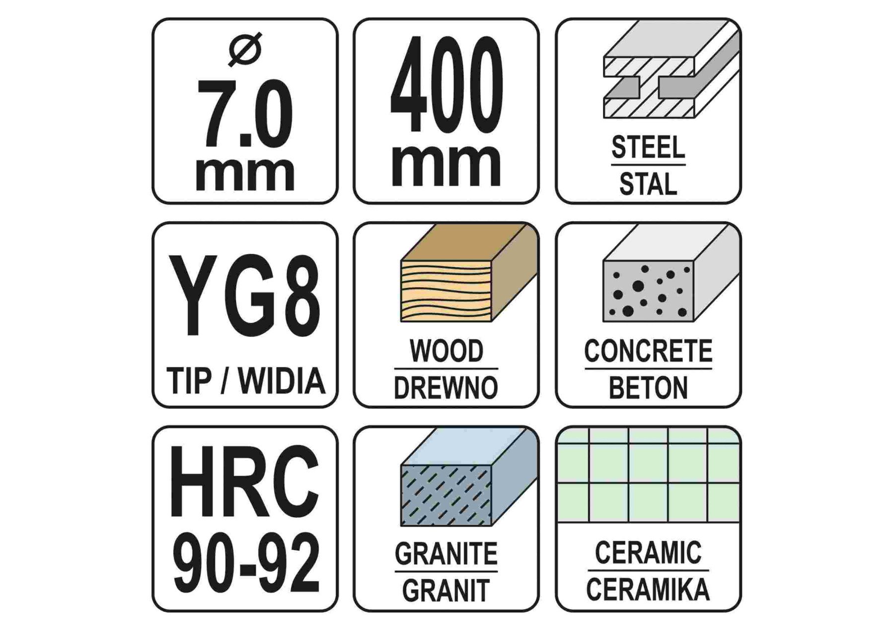 YATO Свердло універсальне : YG8, HRC 90-92, Ø= 6 мм, l= 400 мм