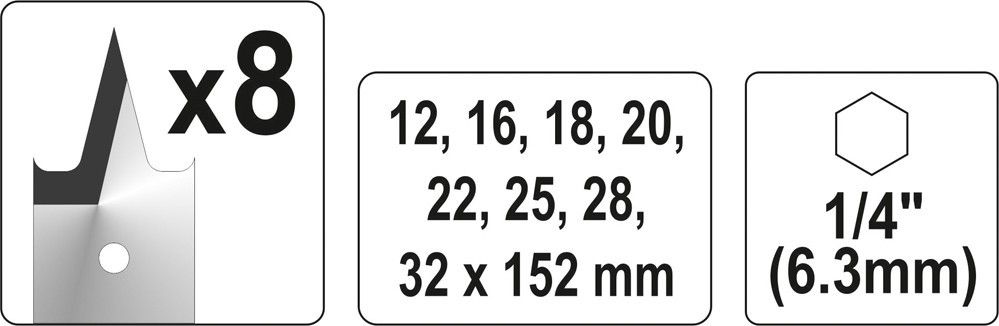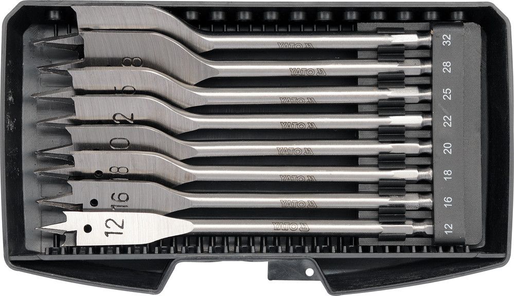 YATO Свердла перові по дереву : 6-гранний хвостик HEX-1/4", Ø= 12-32 мм, L= 152 мм. (Набір/8 Шт.)