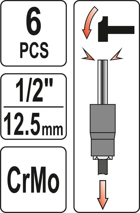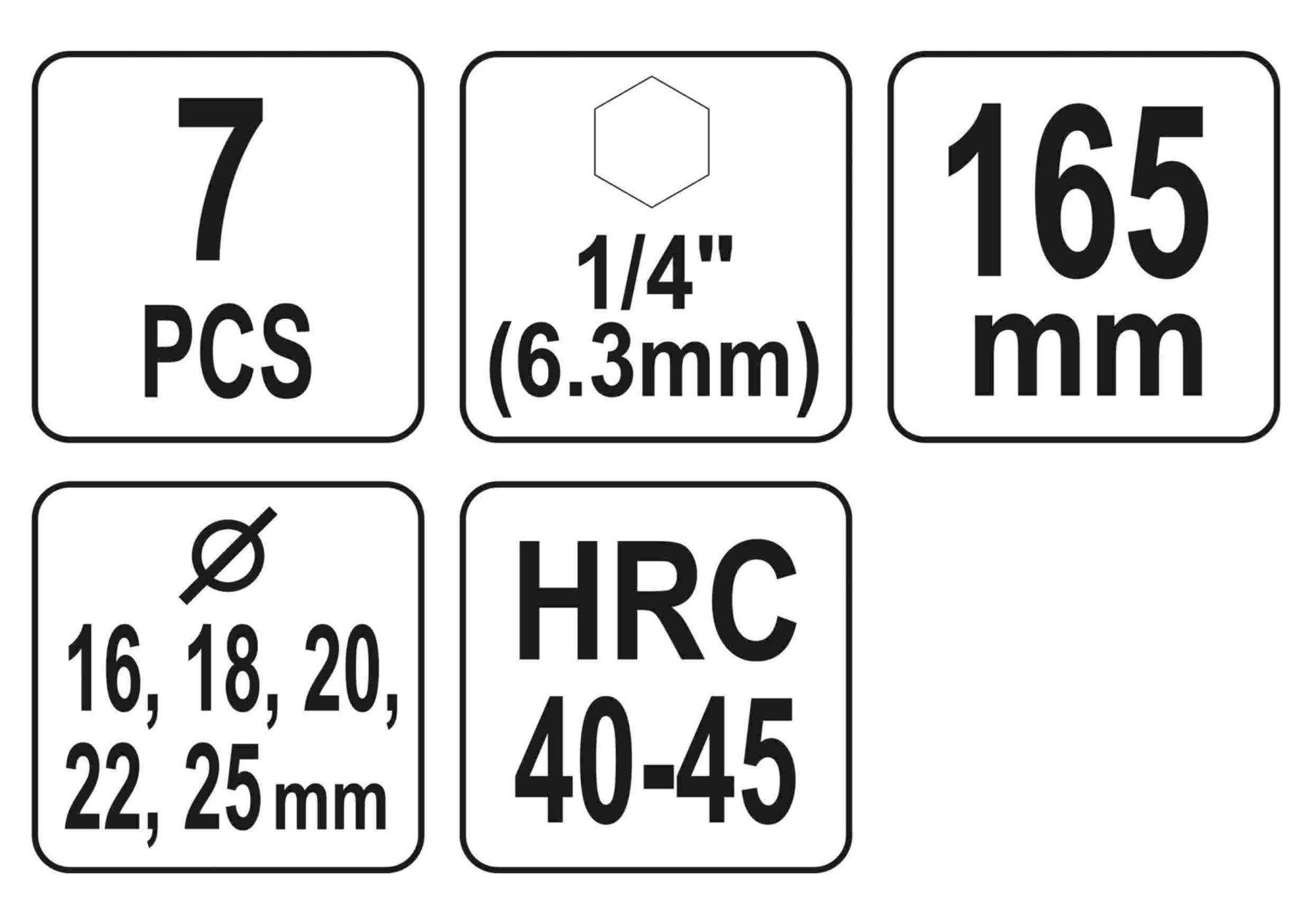 - Набір складається з 5 свердл, подовжувача HEX і шестигранного ключа