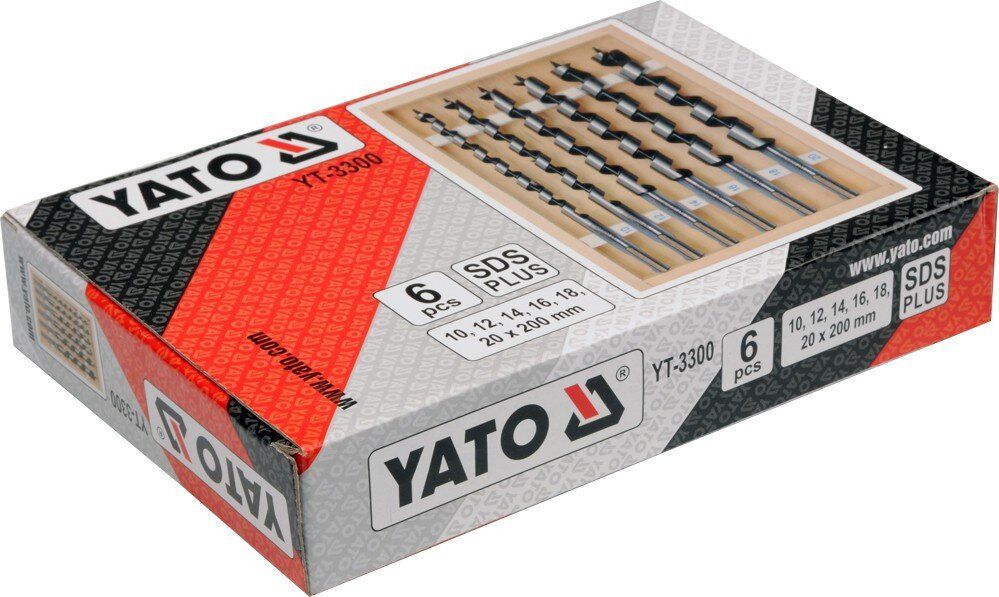YATO Свердла спіральні по дереву : Ø= 10-20 мм, L= 200 мм. Набір 6 шт. [20]