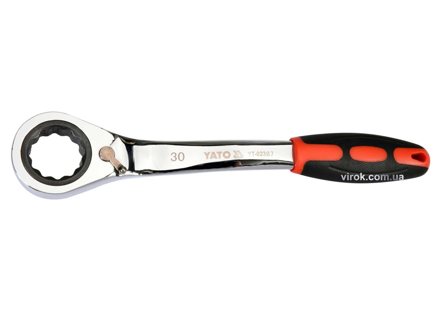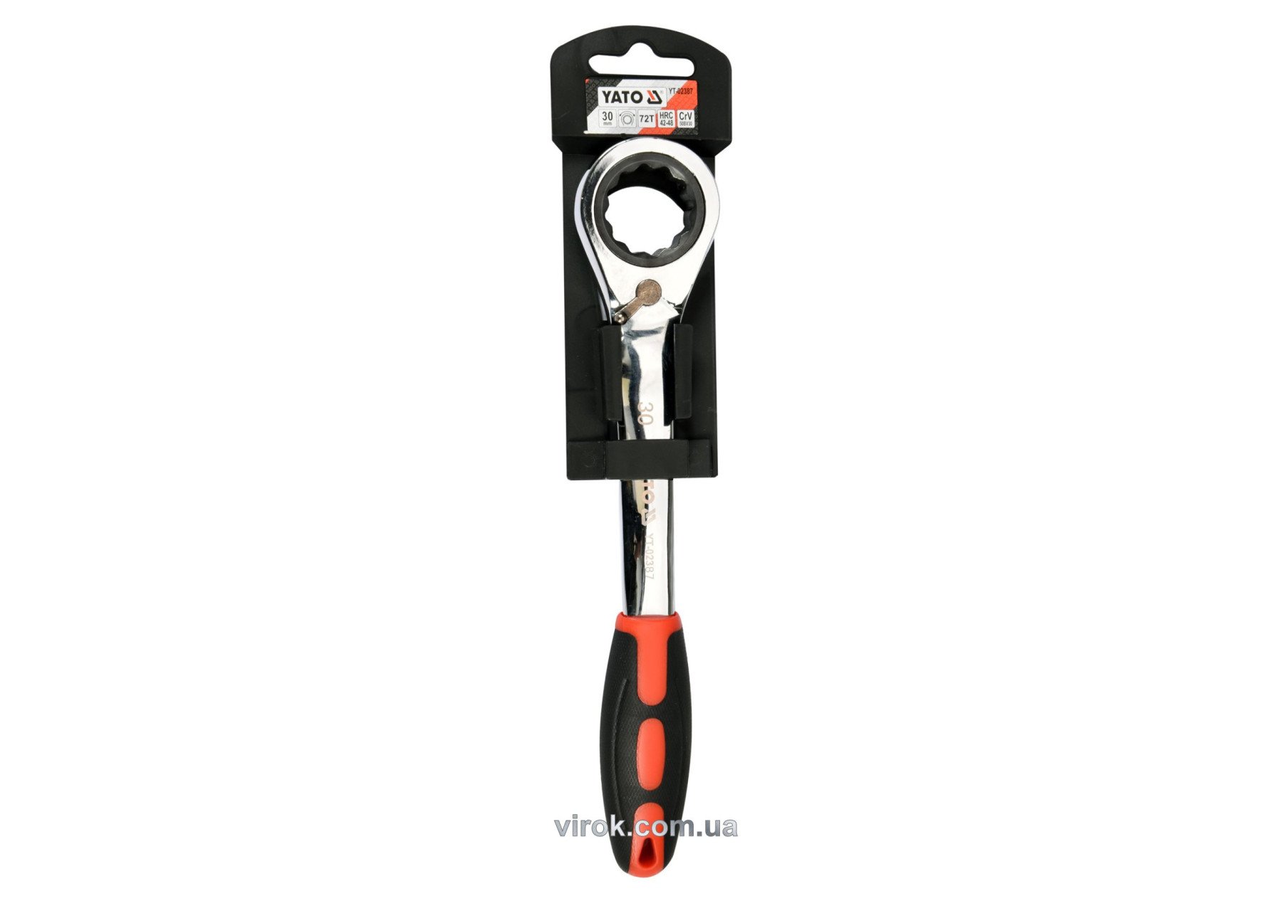 YATO Ключ накидний, вигнутий з тріщаткою: М30, HRC 42-48, Cr-V, з прогумованою ергономічною ручкою