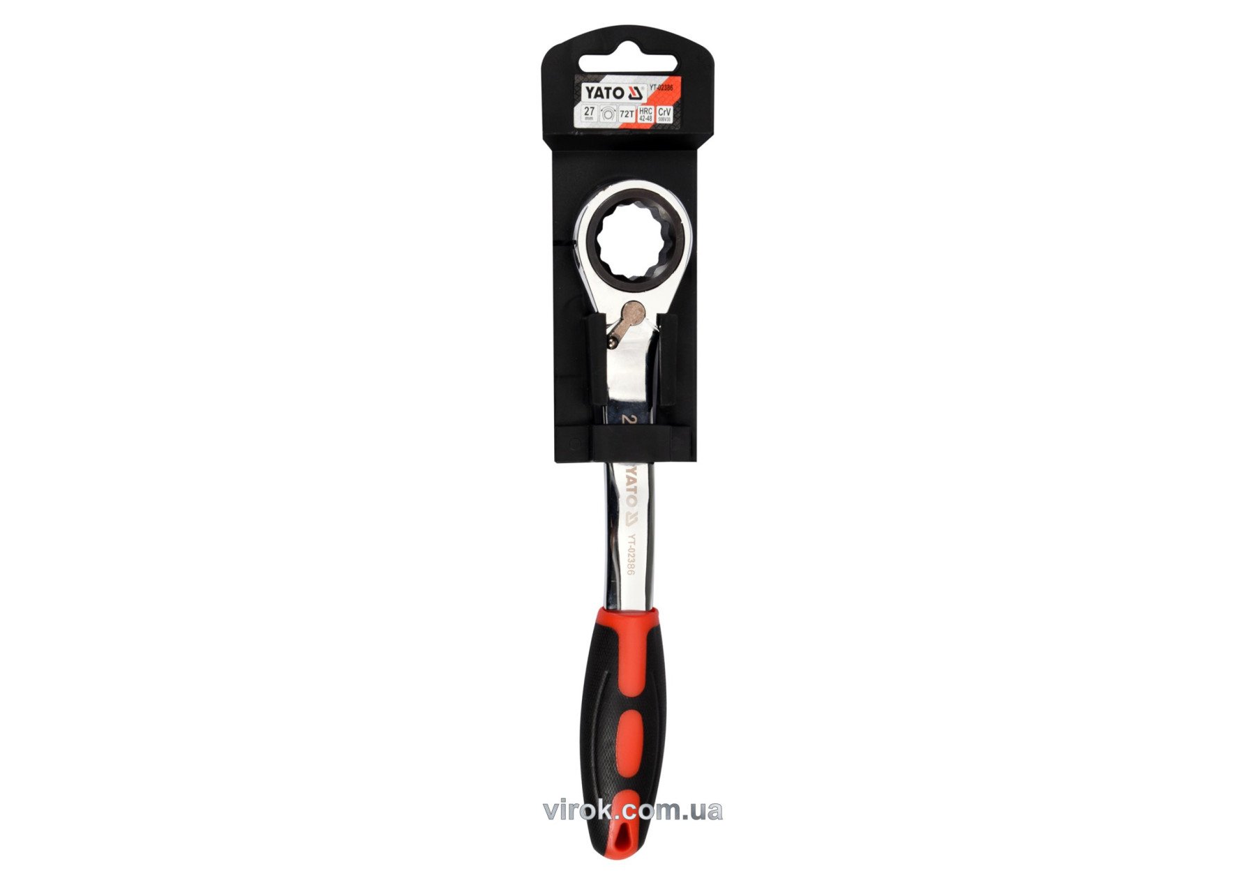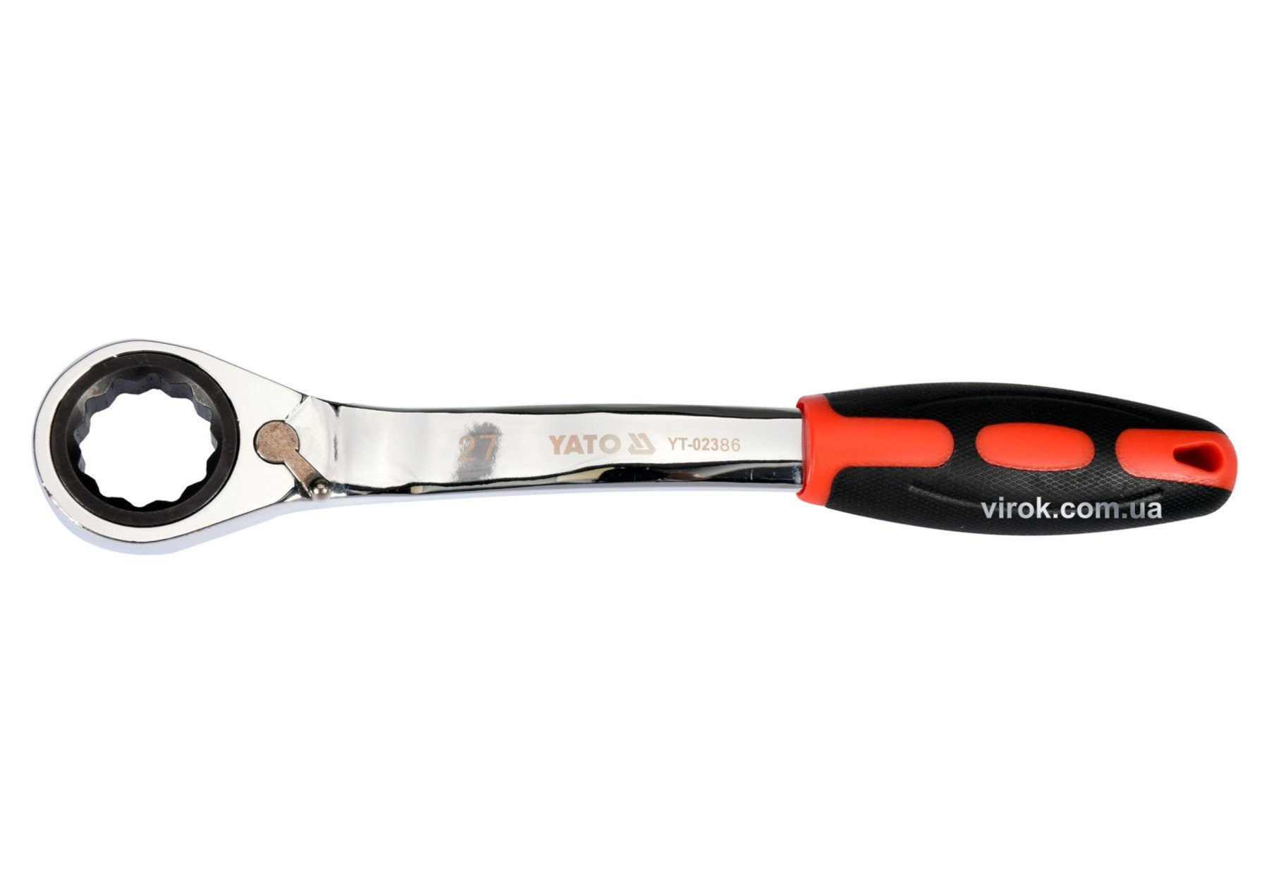 YATO Ключ накидний, вигнутий з тріщаткою: М27, HRC 42-48, Cr-V, з прогумованою ергономічною ручкою