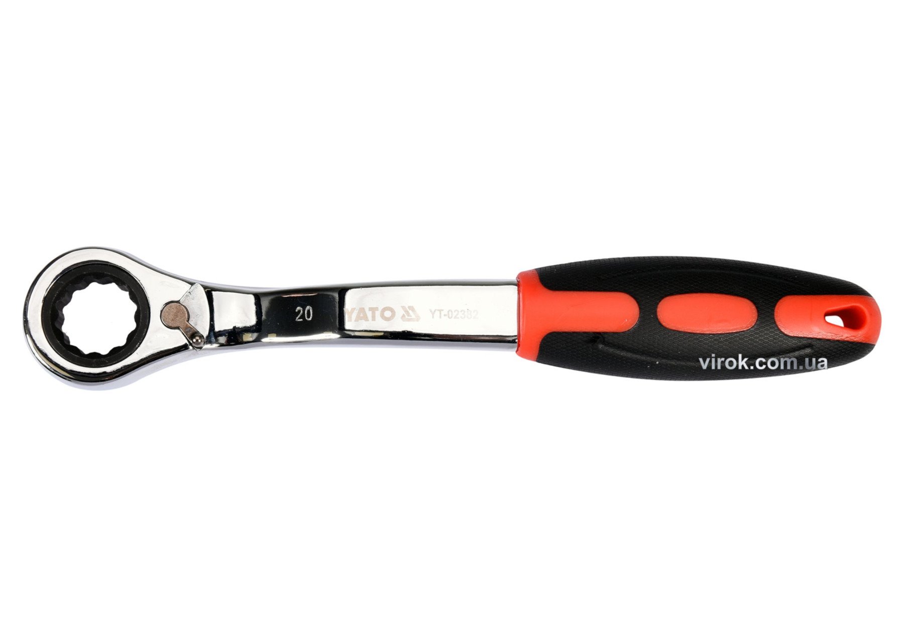 YATO Ключ накидний, вигнутий з тріщаткою: М20, HRC 42-48, Cr-V, з прогумованою ергономічною ручкою