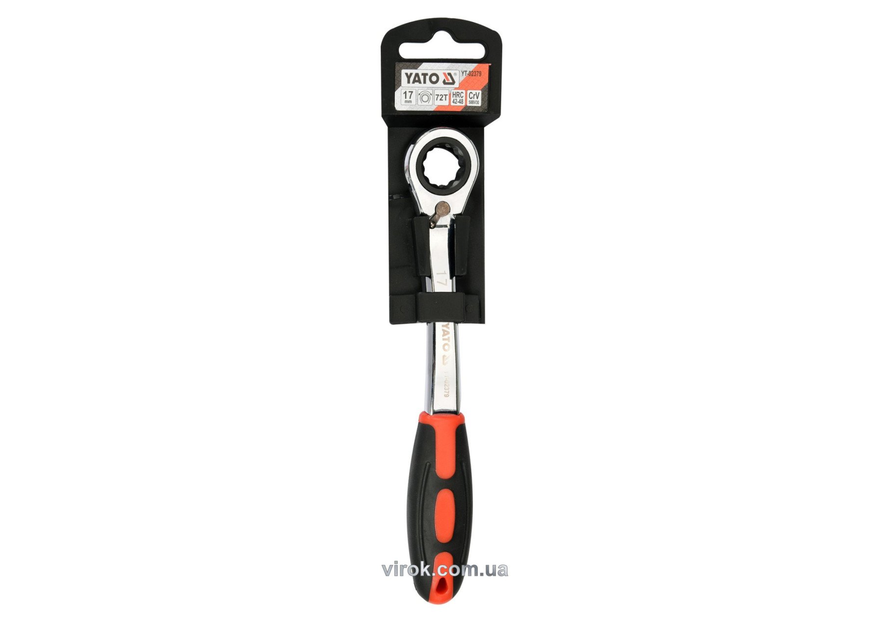 YATO Ключ накидний, вигнутий з тріщаткою: М17, HRC 42-48, Cr-V, з прогумованою ергономічною ручкою