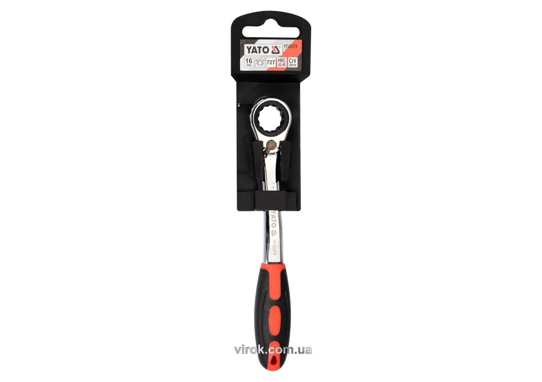 YATO Ключ накидний, вигнутий з тріщаткою: М16, HRC 42-48, Cr-V, з прогумованою ергономічною ручкою