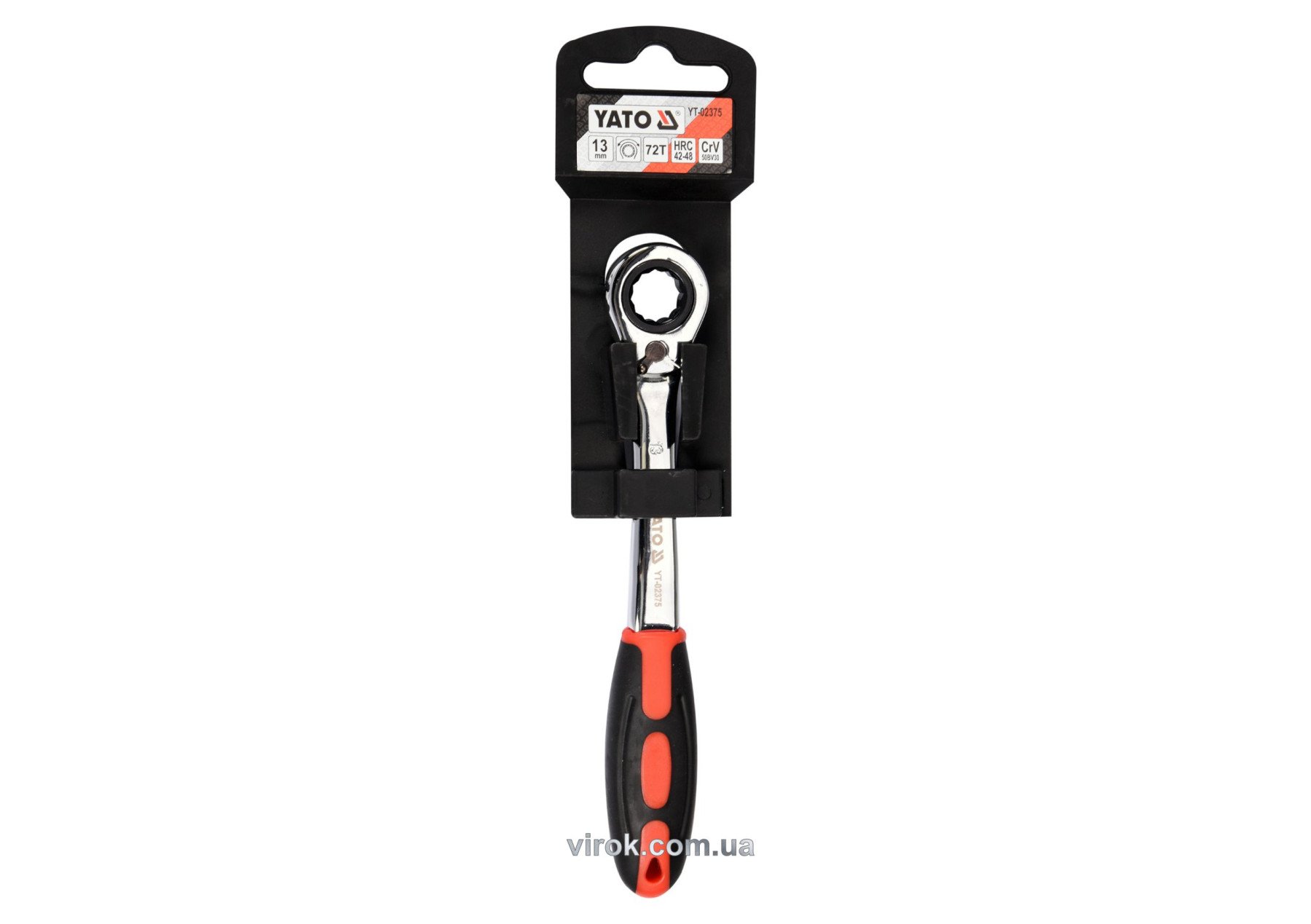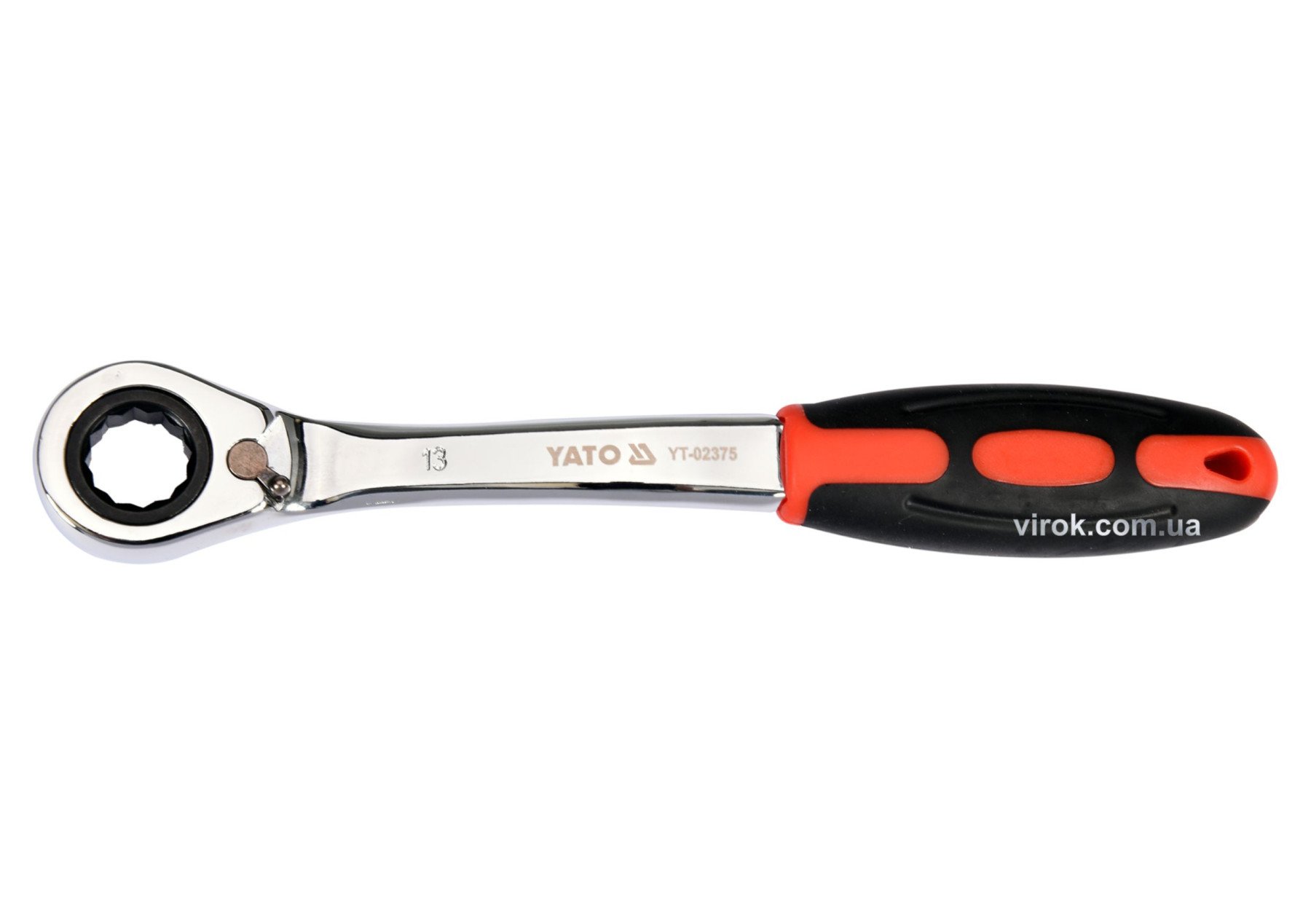 YATO Ключ накидний, вигнутий з тріщаткою: М13, HRC 42-48, Cr-V, з прогумованою ергономічною ручкою