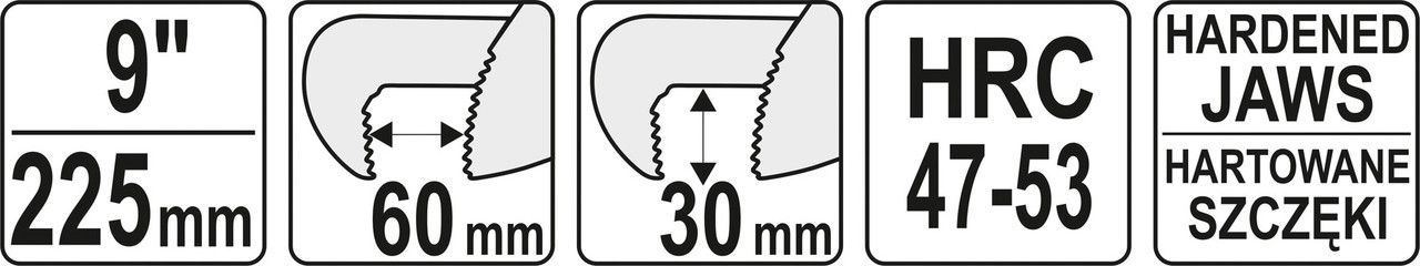 YATO Ключ до труб тип "Німецький" з розвод. губок- 60 мм, глиб.- 30 мм, L = 225 мм (9")