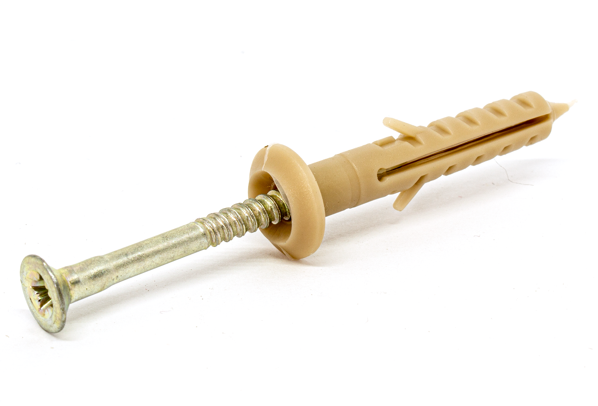 - Во время забивания винтовой гвоздь вызывает расширение дюбеля в
