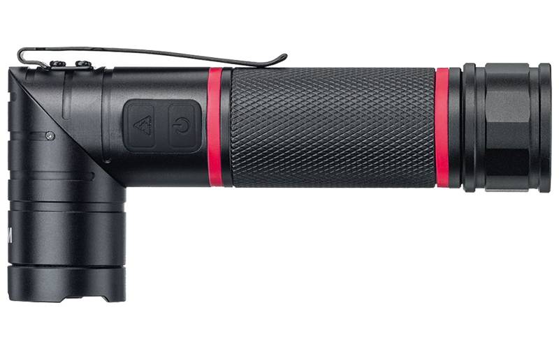 - Особливості : головка ліхтаря повертається та фіксується в L-подібній формі, що дозволяє споживачеві направити промінь у потрібне місце.
