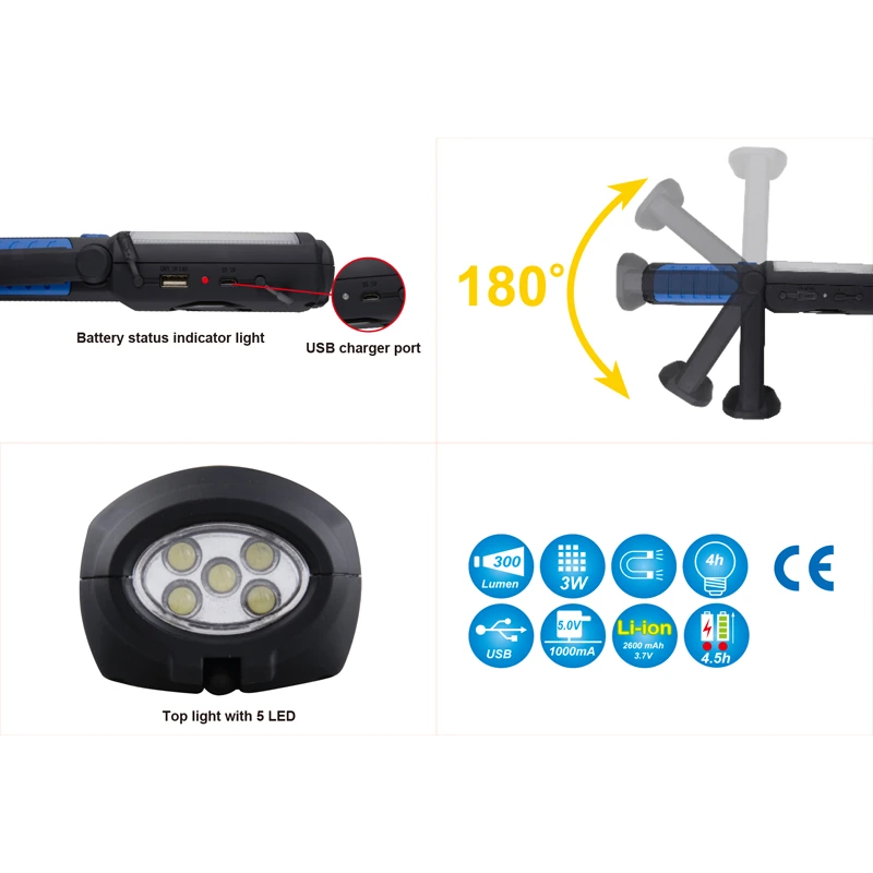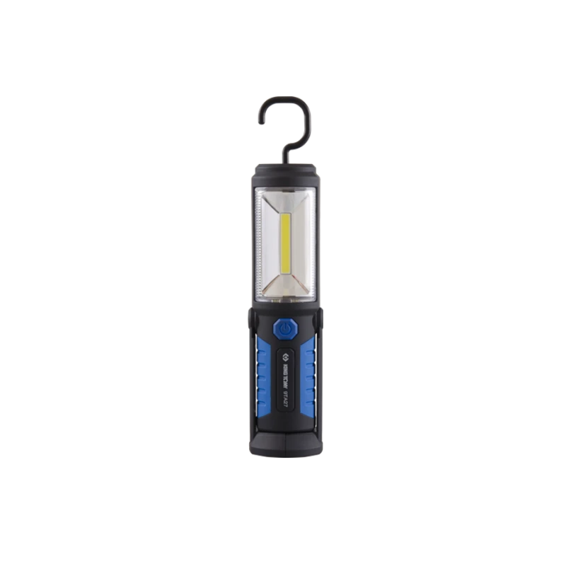 Фонарь светодиодный 3W COB + 5 LED King Tony (9TA27A) – это портативный осветительный прибор, предназначенный для автосервиса. Особенность фонаря в удобной конструкции, которая разрешает расположить его где-угодно и направлять свет под любым углом.