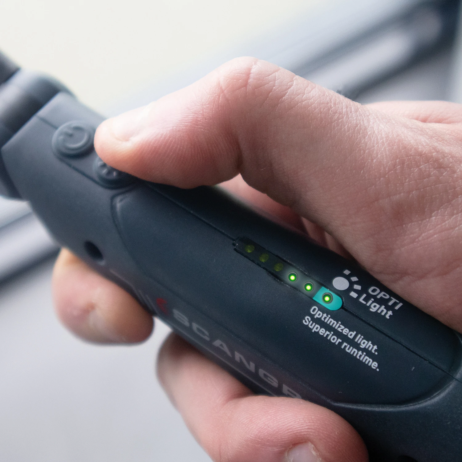 Scangrip Slim for Life оснащений індикатором стану батареї та миготливим повідомленням про низький рівень її заряду. Це дозволяє ефективніше планувати робочий процес та уникати незапланованих перебоїв із подачею електроенергії. Місткість батареї 2600 мАч забезпечує автономний час роботи до 27 годин при мінімальному рівні освітленості або дві з половиною години при максимальній яскравості.