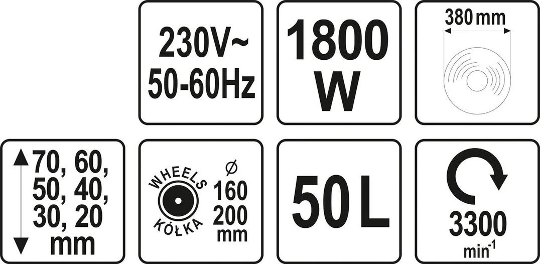 YATO Газонокосарка на 4-х колесах електромережева, 1800 Вт, обрізний діап. Ø= 38 см, ємн.- 50 л