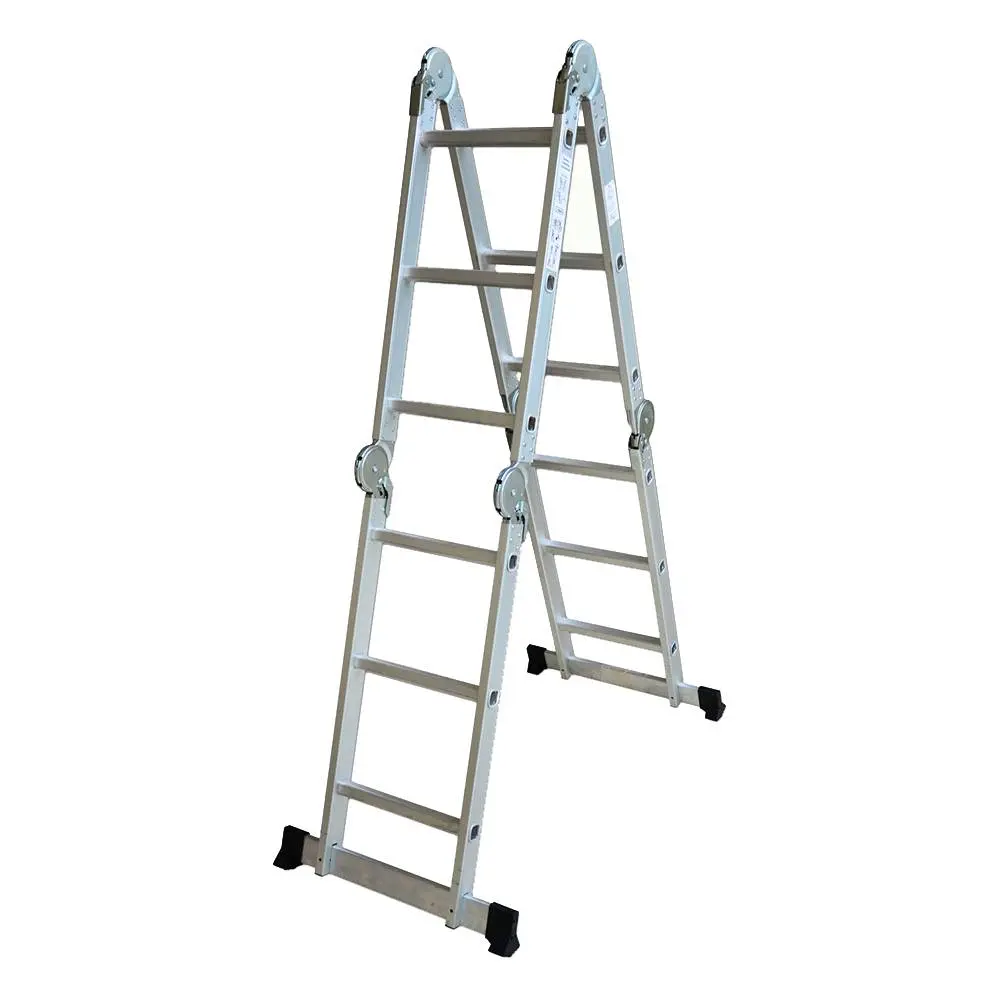 Лестница изготовлена из алюминиевой плоскоовальной трубы толщиной стенки 0,8 и 1,0 мм. Оснащается двумя опорными тегами для лучшей устойчивости, а также тремя комплектами мощных фиксирующих замков. Комплектуется двумя металлическими фермами для дополнительной жесткости конструкции. Выдерживает вес до 150 кг. Конструкция лестницы стойкая и надежная. Случайное складывание невозможно. Способна выполнять функции приставной лестницы, Г-образной лестницы (удобно для фасадных и кровельных работ), М-образной (удобно для внутренних и отделочных работ на небольшой высоте). Трансформируется таким образом, что легко помещается в багажник легкового автомобиля.