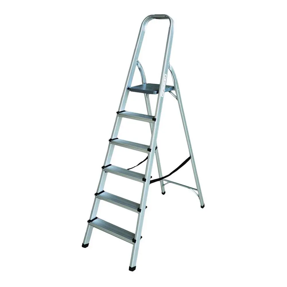 Стремянка односторонняя раскладная изготовлена из прочного алюминиевого профиля стенки, которого толщиной 1,2 мм, а в местах максимальной нагрузки достигают толщины в 1,5 мм. Благодаря тому стремянка выдерживает нагрузку до 150 кг. Оборудована рифлеными антискользящими ступеньками шириной 80 мм, и пластиковыми опорными антискользящими заглушками, которые в свою очередь гарантируют безопасность при использовании стремянки. Алюминиевая стремянка, за счет малого размера и веса, имеет отличную мобильность и не составит проблем в выборе места для ее хранения.