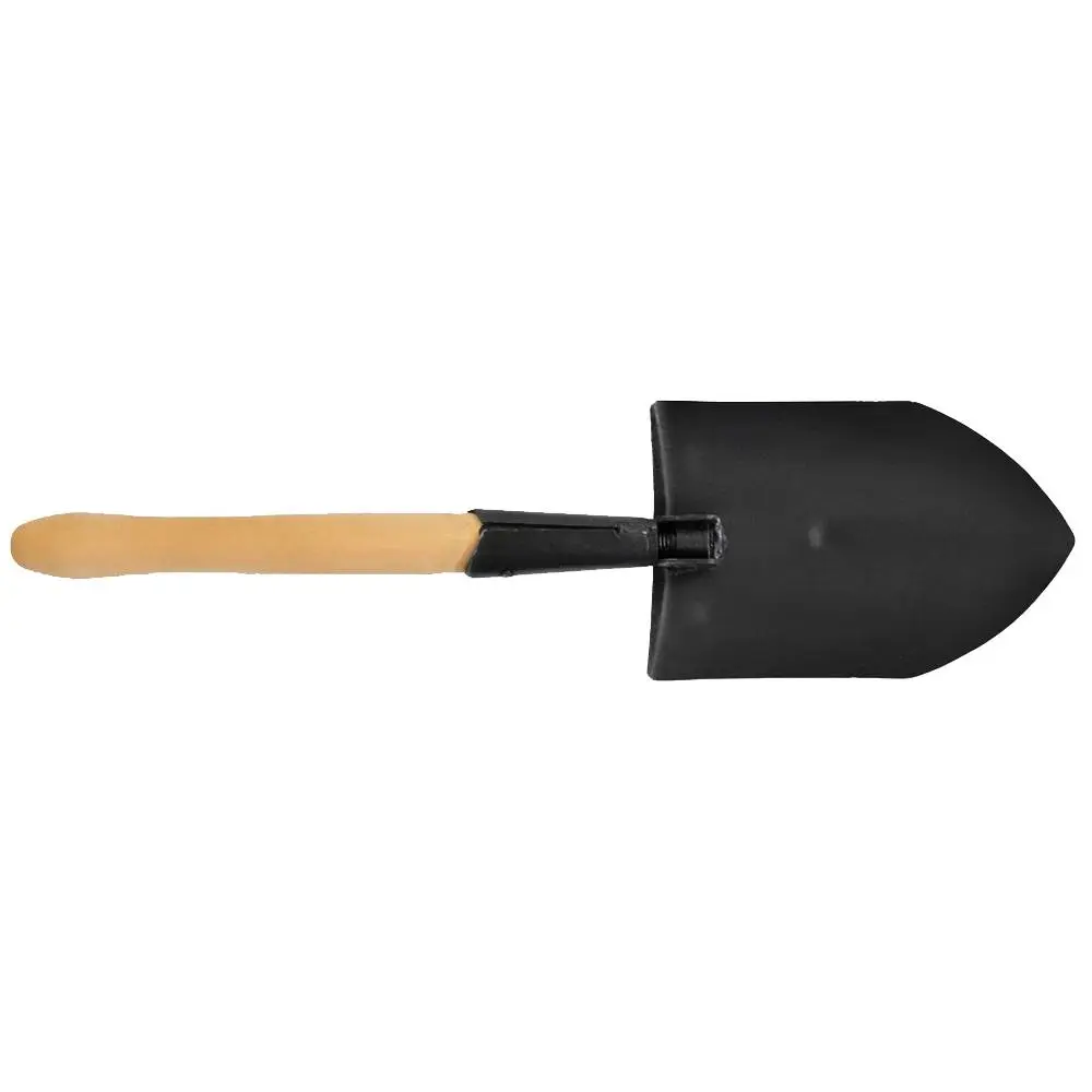 Раскладная саперная лопата, ковш которой изготовлен из стали с антикоррозийным покрытием, толщина металла достигает 1,5-2 мм. Комплектуется прочным деревянным черенком, покрытым слоем лака. Лопата саперная является незаменимым инструментом для автомобилистов, любителей туризма и рыбалки, а также универсальным садовым инвентарем, который помогает справляться с мелкими работами на дачном участке. Саперная лопата имеет заточку, благодаря чему легко входит в грунт, ее можно использовать для обрубки ветвей и как садовую лопатку. Благодаря своим компактным размерам, легко может поместиться в рюкзаке, не займет много места в багажнике или ручной клади.