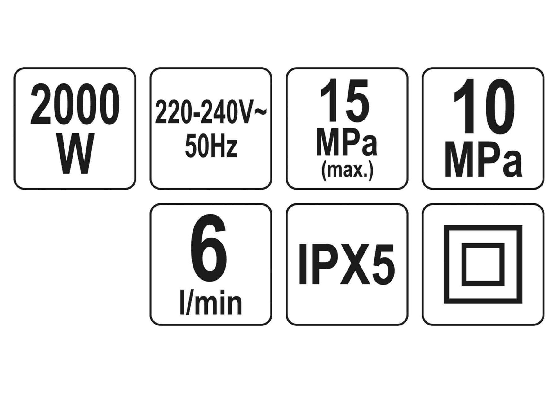 YATO Мийка високого тиску мережева : 2000 Вт, макс. P= 15 МПа, 6 л/хв, шланг- 5 м