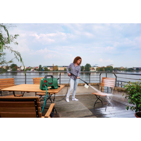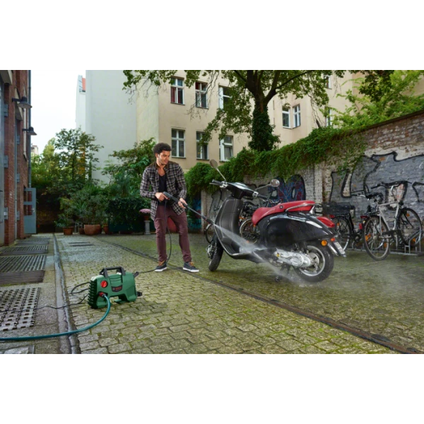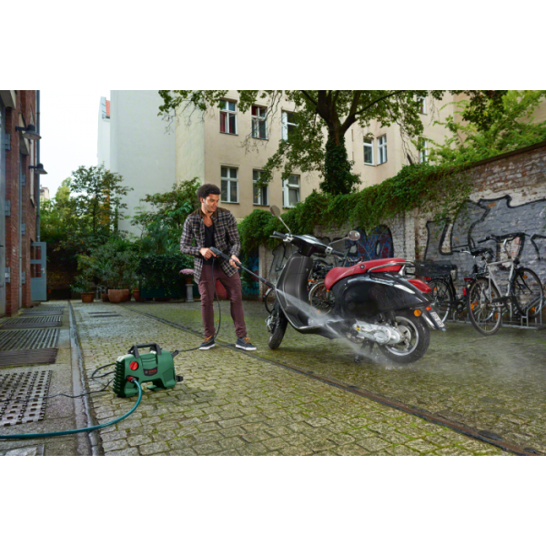 - Вага 3.8 кг Довжина кабелю 5 м Потужність 1300 Вт Комплектація пістолет високого тиску, шланг високого тиску 3 м, сопло високого тиску (450 мл), регульоване плоске струйное сопло, роторна насадка, фільтр для води Фільтр водяний: утворення піни під високим тиском Довжина шлангу 3 м Продуктивність 330 л/год Тиск 110 бар Температура води 40°C Материал метал, ПВХ (шланг) -