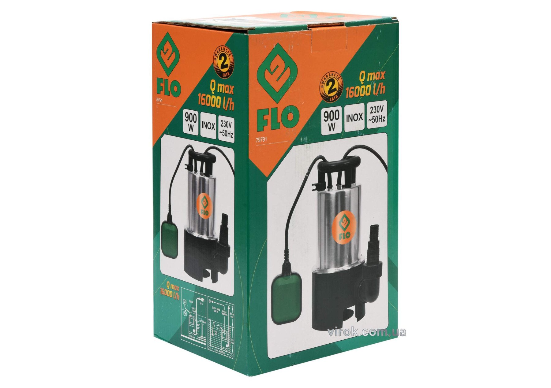 FLO Насос для брудної води мережевий, 900Вт, 16000 л/год, макс.висота- 15,5 м, корпус з нерж. сталі | 79791