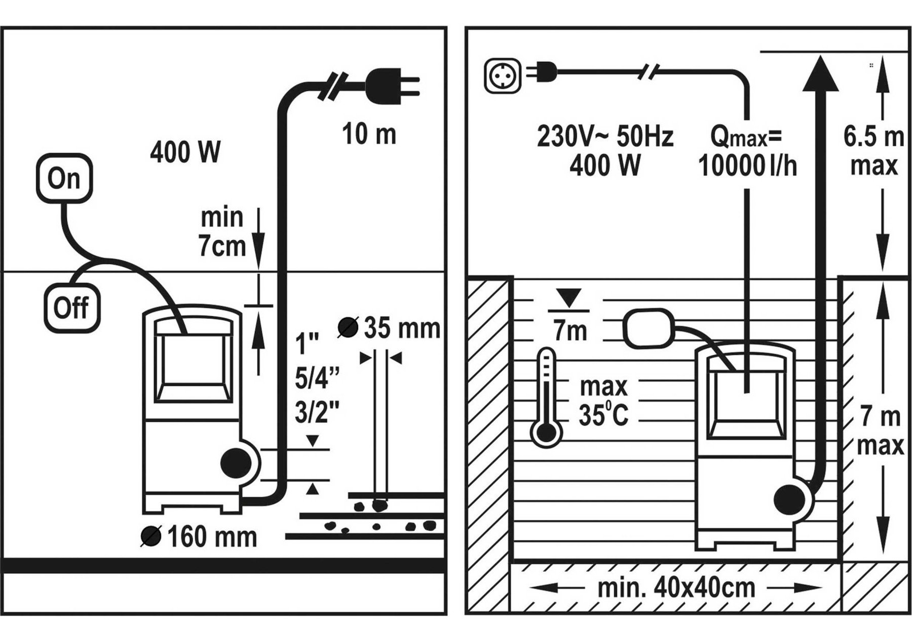 - Мінімальний поперечний переріз свердловини: 40 х 40 х 50 см
