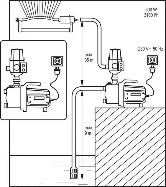 Садовой насос используется для перекачки чистой воды для использования в огороде, например, для орошения. Насос оснащен реле давления, которое запускает насос только тогда, когда возникает потребность в воде. Это позволяет экономить воду и уменьшить потребление электроэнергии.