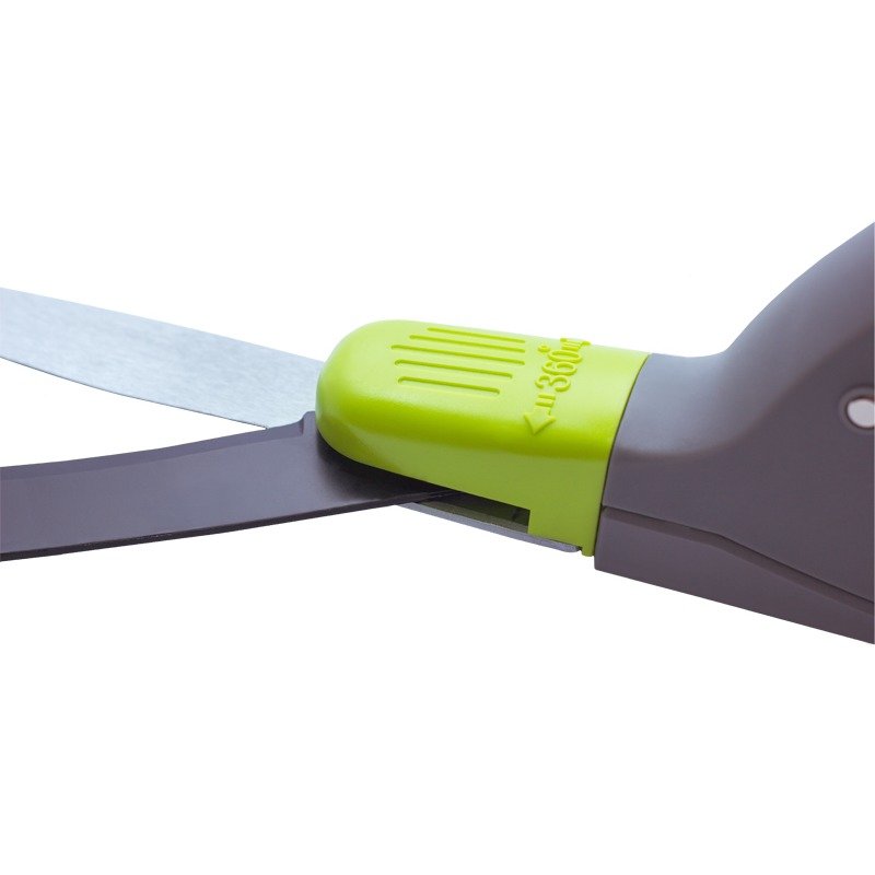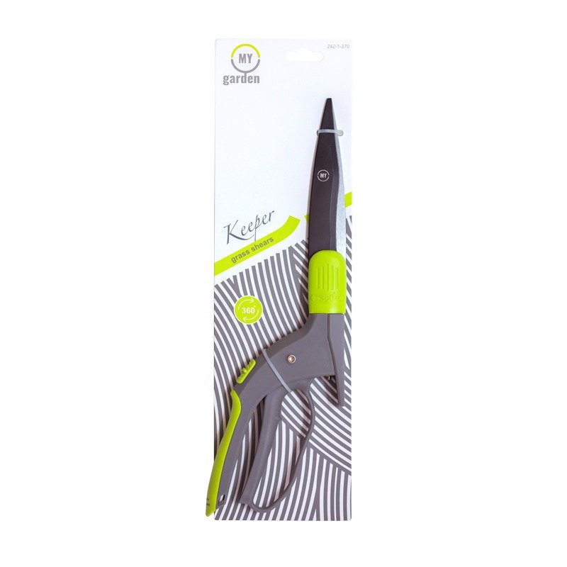 Ножиці газонні, поворотні, 360 градусів. Леза виготовлені з високоякісної японської сталі SK5. Можуть застосовуватись як для підстригання трави, так і для живої огорожі та формування декоративних рослин. Можливість повертати ріжучий блок дозволяє легко працювати у важкодоступних зонах.