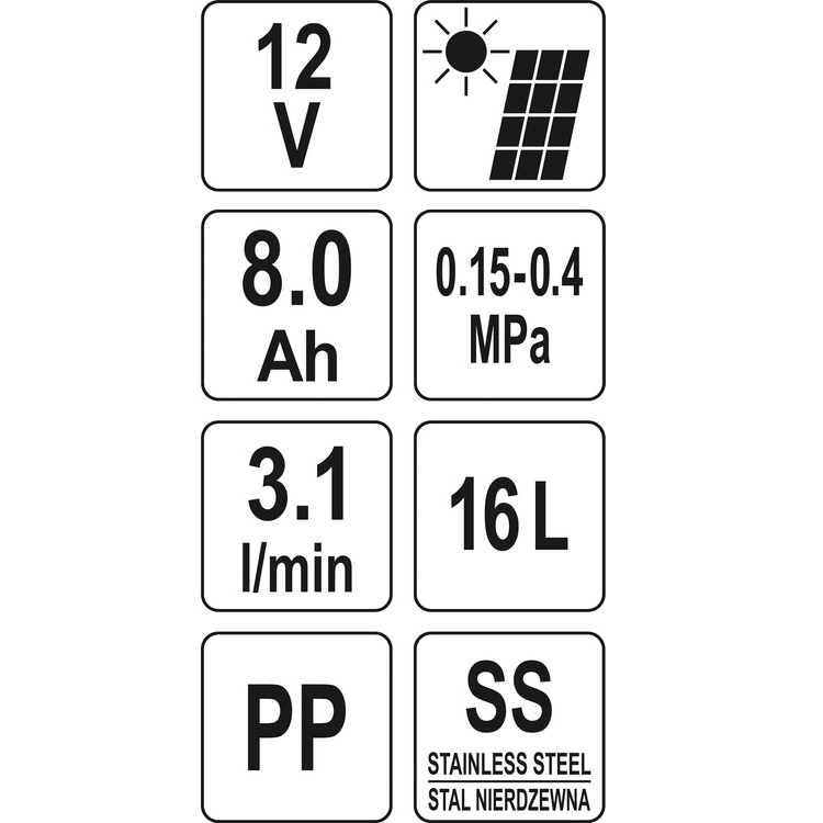 YATO Оприскувач акумуляторний ранцевий, 12 В, 8 Агод, 16л, продуктивность- 3.1 л/хв(сонячна бат)
