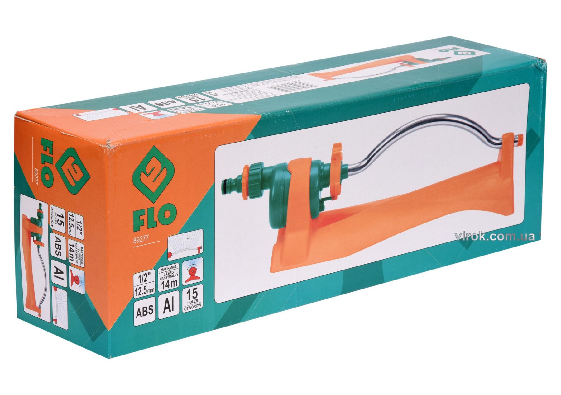 FLO Зрошувач осциляційний до шлангу 1/2", 15 отворів, межа дії- 14 м, ABS-пластик + алюміній | 89277
