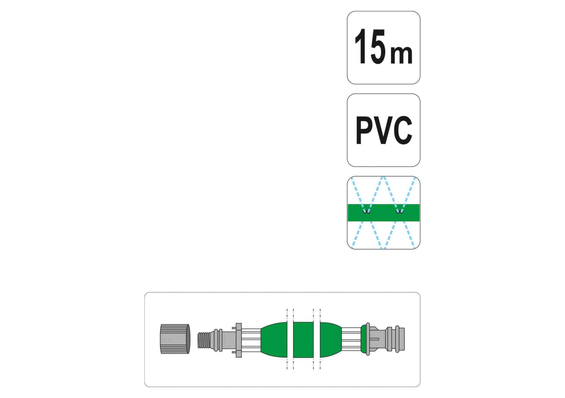 FLO Шланг плоский з отворами для зрошування : l=15 м, Ø=16мм, ПВХ, з швидкосполуч. наконечниками | 89361