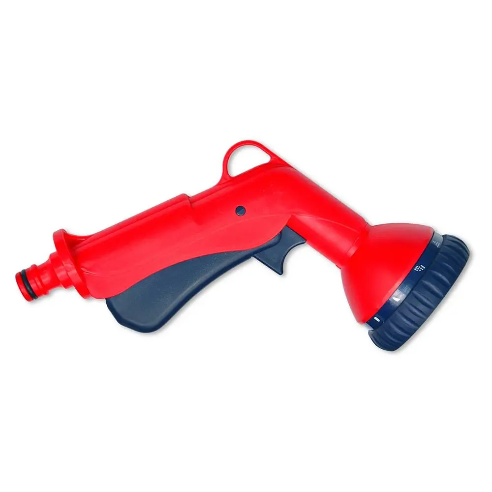 Пістолет використовується для ручного поливу газонів середньої та невеликої площі, городів, квітників, прибирання доріжок на прибудинковій території, миття садового інвентарю та техніки. Підключається до садових шлангів за допомогою конекторів. Рекомендований робочий тиск в системі від 2 до 4 атмосфер. Поворотна головка пістолета має 10 положень і регулює форму струменя і ступінь розпилення води. Можливі режими поливу: повний, круг, конус, центр, плоский, душ, кут, туман, підливання, вертикальний. Фіксація курка для тривалого поливу. Зміна режиму роботи простим поворотом головки. Виготовлений з якісного пластику, довговічний, стійкий до механічних пошкоджень, впливу ультрафіолету і водорозчинних добрив. Інструкція по підключенню пістолета: підключити садовий шланг через кран до джерела водопостачання, за допомогою конектора (з аквастопом) підключити шланг до пістолета, вибрати необхідний режим поливу, увімкнути пістолет натисканням на курок.