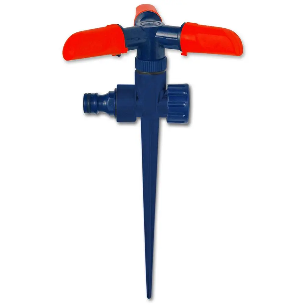 Розпилювач круговий пластиковий на 3 сопла використовується для зрошення газонів середньої та невеликої площі, підійде так само і для поливу городу. Він розбризкує воду тонкими струменями, імітуючи природний невеликий дощ, і обробляє сектор ділянки захопленням 360°. Підключається до садових шлангів за допомогою конекторів. Рекомендований робочий тиск в системі від 2 до 4 атмосфер. Виготовлений з ABS пластика, довговічний, стійкий до впливу ультрафіолету і водорозчинних добрив. Простота установки, висока ефективність і рівномірність поливу, дозволяє вносити водорозчинні добрива, збереження оптимального рівня вологості грунту і повітря. Інструкція по монтажу: підключити садовий шланг через кран до джерела водопостачання, за допомогою конектора підключити шланг до розпилювача, встановити розпилювач на місце поливу, подати воду в систему.