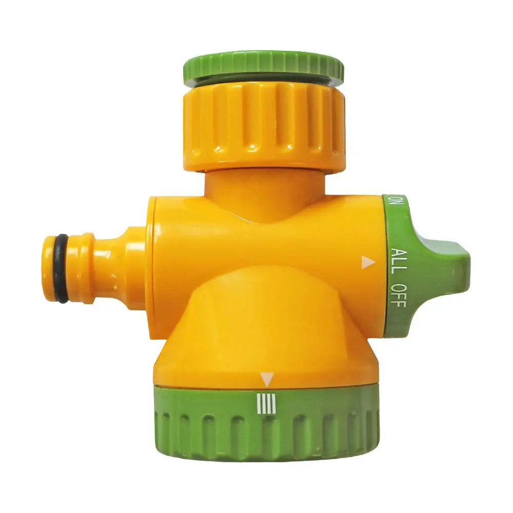 Адаптер це первинний перехідник, призначений для підключення шланга до крана або розподільника. Має різьбову частину та ніпель. Маркується за розміром підключаємого крана (1/2', 3/4', 1/2'-3/4' тощо). Адаптер з внутрішнім різьбленням накручується на різьбовий кран з зовнішнім різьбленням відповідного розміру або на розподільник, ніпель підключається до конектора зі шлангом. Адаптер регульований з лійкою - дозволяє підключати одну лінію поливу до джерела води та використовувати душову лійку для миття рук, садових та поливальних інструментів. Має додатковий кран для регулювання. Зручний прилад для господарських робіт.