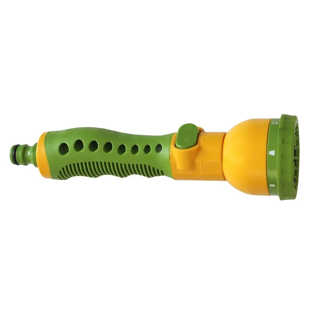 Пістолет з вмикачем для старта або закінчення поливу. Ергономічна прогумована ручка з заглибинами під пальці. 7 режимів поливу: конус, центр, підлив, туман, плоский, сильний струмінь, душ. Зміна режиму роботи простим поворотом головки. Пістолет використовується для ручного поливу газонів середньої та невеликої площі, городів, квітників, прибирання доріжок на прибудинковій території, миття садового інвентаря та техніки. Підключається до садових шлангів за допомогою конекторів. Рекомендований робочий тиск в системі від 2 до 4 атмосфер. Виготовлений з якісного матеріалу ABS+TPR, стійкий до механічних пошкоджень, впливу ультрафіолету і водорозчинних добрив. Інструкція по підключенню пістолета: підключити садовий шланг через кран до джерела водопостачання, за допомогою конектора (з аквастопом) підключити шланг до пістолета, вибрати необхідний режим поливу, увімкнути пістолет.