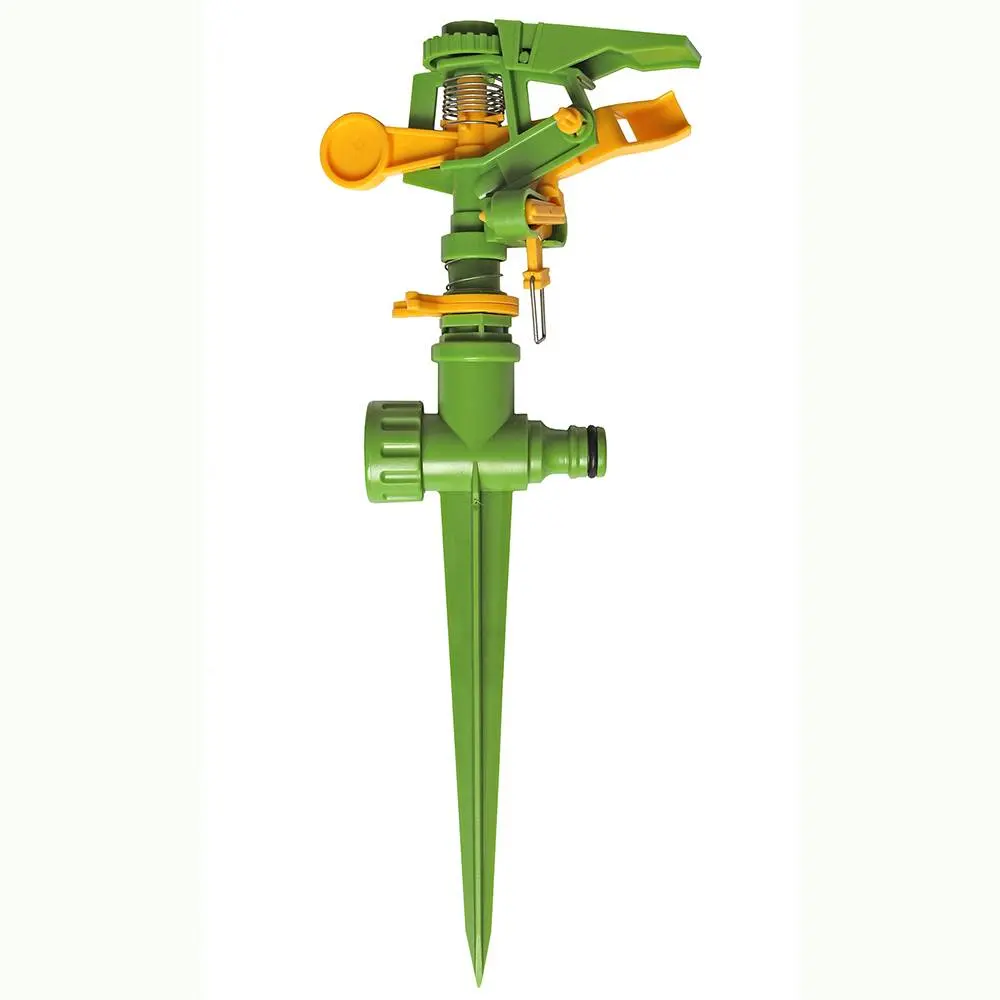 Розпилювач імпульсний пластиковий призначений для рівномірного секторно-кругового поливу клумб, газонів, присадибних ділянок, городів невеликої площі. Має 4 режима поливу: коло, частина кола, півколо, 1/4 кола. Подає воду короткими імпульсами з невеликим тимчасовим інтервалом. Вбудований маятниковий механізм розбиває струмінь на частини і створює ефект близький до природного дощу. Обробляє сектор ділянки 360°. Рекомендований робочий тиск в системі від 2 до 4 атмосфер. Виготовлений з якісного пластика ABS+PP, довговічний, стійкий до впливу органічних і неорганічних водорозчинних добрив. Інструкція по монтажу імпульсного розпилювача: підключити садовий шланг через кран до джерела водопостачання, за допомогою різьбового адаптера і конектора під'єднати шланг до розпилювача, встановити розпилювач на місце поливу, відрегулювати необхідний сектор зрошення, подати воду в систему. Конструкція дозволяє створити мережу одночасно працюючих розпилювачів.