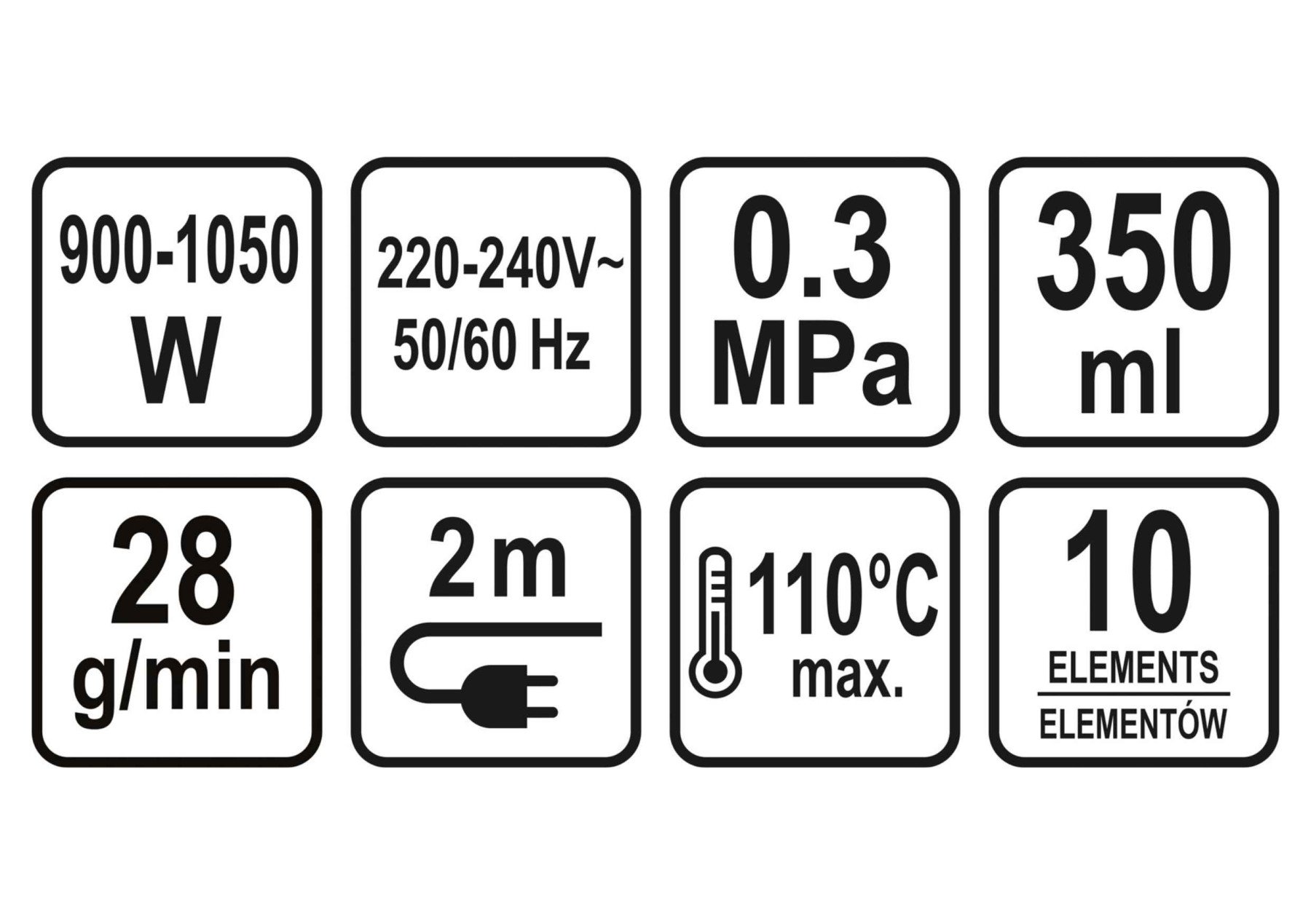 LUND Пароочисник мережевий : 1 кВт, ємність- 350 мл, макс. t= 110 °С, 10 насадок | 67200
