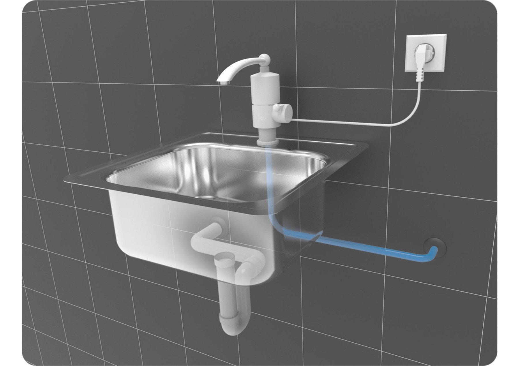 FALA Нагрівач води проточної мереж. до 60°С,3кВт,тиск 0,04-0,6MPa, гусак l=10 см, нижнє під'єднання | 75931