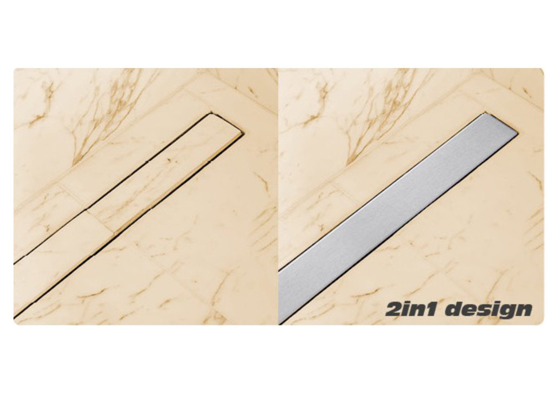 - 2IN1design – Реверсивна решітка дозволяє вставляти плитку або використовувати повністю покриту щіткою кришку з нержавіючої сталі