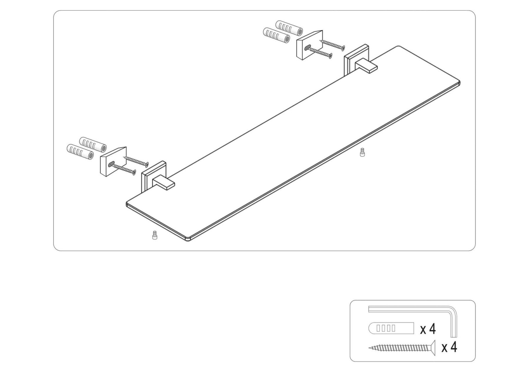 FALA Полка скляна настінна , l= 52 см; кріплення дюб/шуруп | 69321