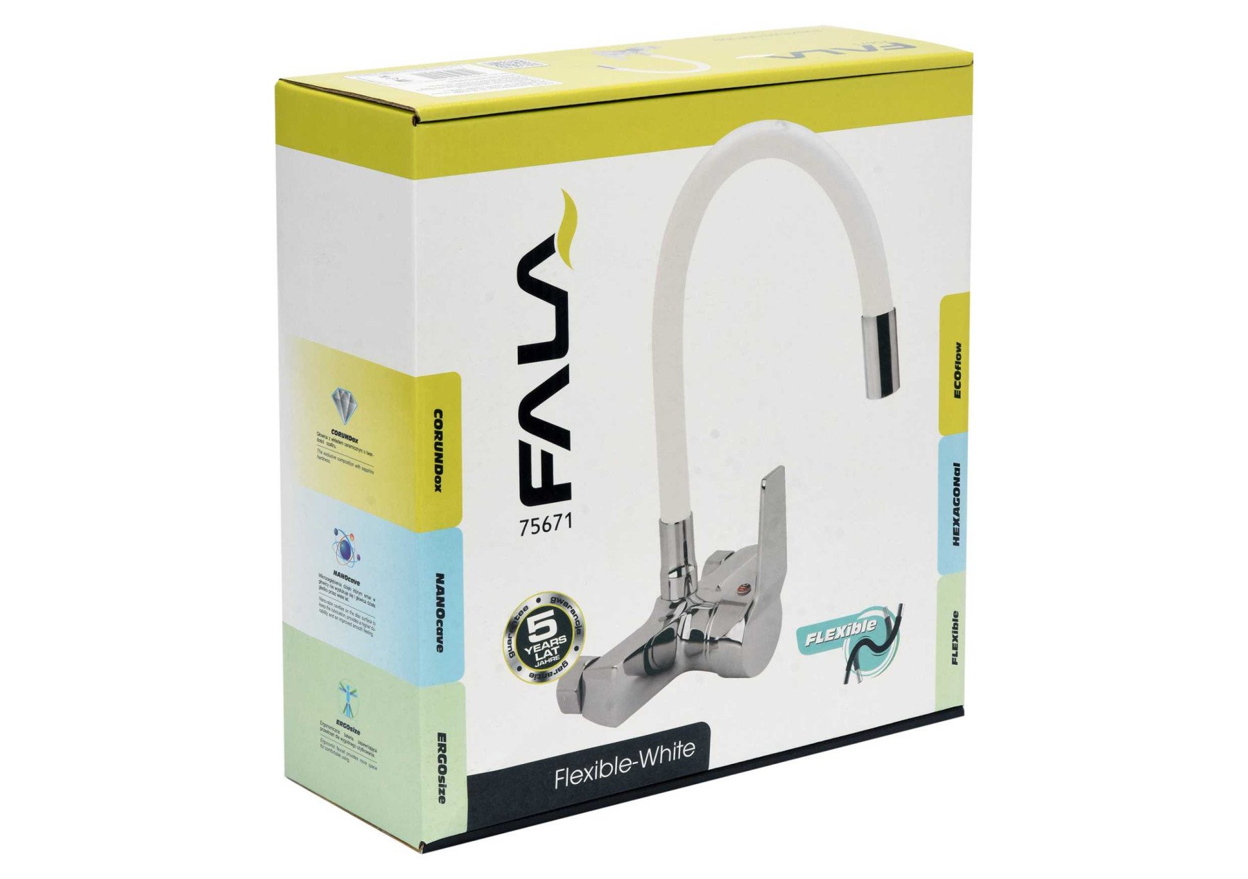 FALA Змішувач води настінний "FLEXIBLE" з гнучкою білою лійкою | 75671