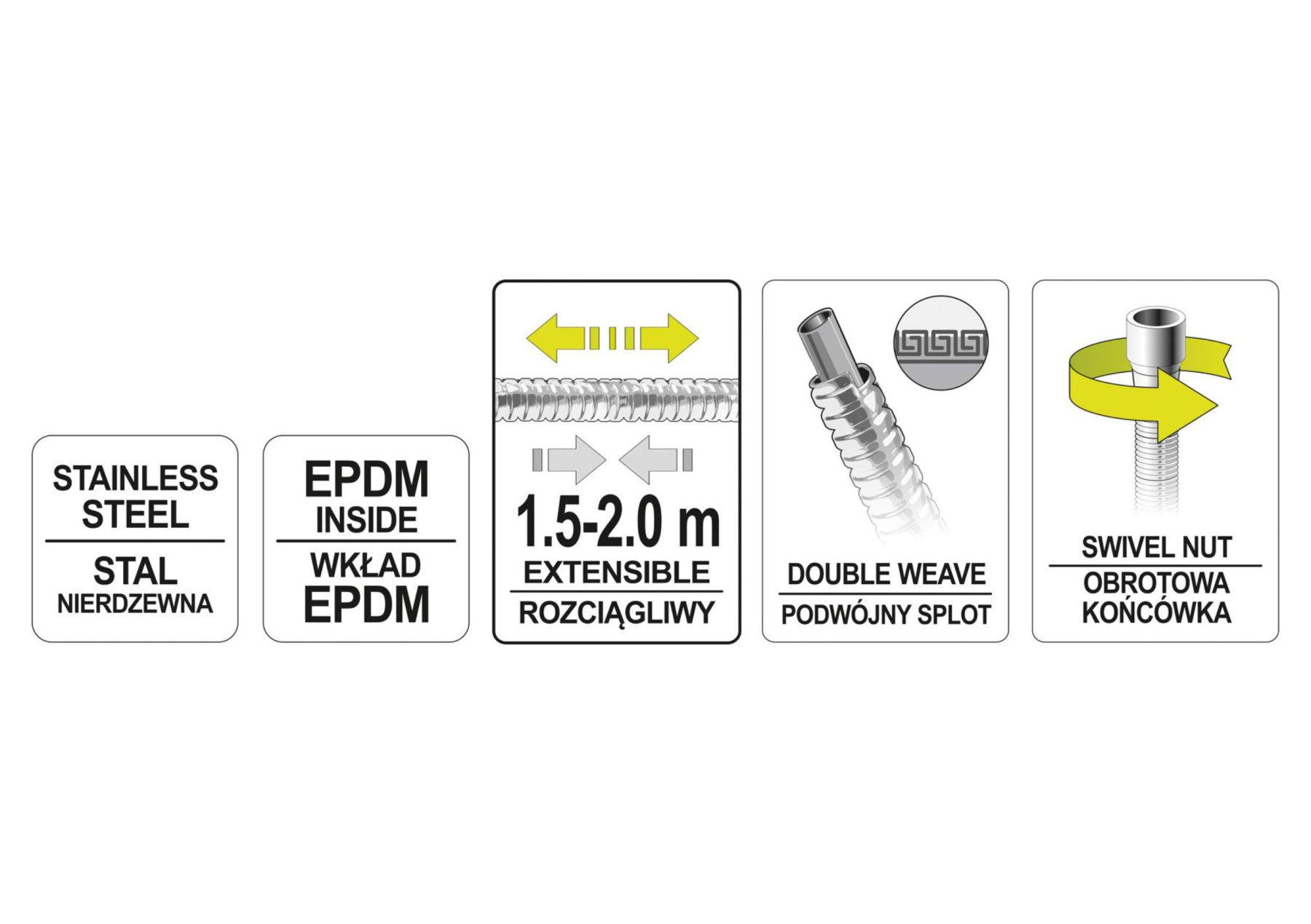 FALA Шланг для душа розтяжний Ø= 14 мм, з нержав. сталевою хромованою гофрою, G 1/2, l=1,5-2 м | 75651