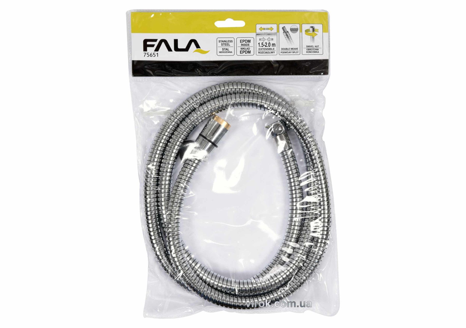 Еластичний шланг для душу FALA 75651 доповнить неповний змішувач для ванни та душу або замінить пошкоджений шланг. Вибір доступної довжини дозволяють ідеально підібрати шланг у змішувач, забезпечуючи комфорт використання. Виготовлений з нержавіючої сталі.