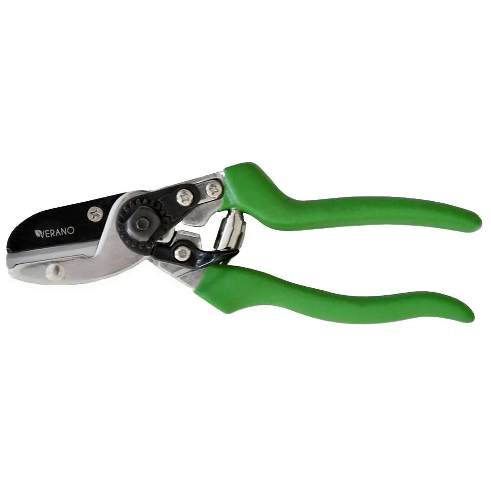 Ручний універсальний контактний секатор довжиною 200 мм використовується для обрізання тонких сухих м'яких гілок. Леза зі сталі SK5, верхнє з PTFE покриттям (яке запобігає залипанню гілок, прилипанню соку від гілок, а також пилу і бруду з дерева, це покриття спрощує процес роботи і очищення інструменту після роботи), нижнє лезо з оцинкованої сталі з ковадлом з міцного композитного матеріала - поліформальдегіду POM. Прямий зріз діаметром до 15 мм. Секатор має механiзм тонкого регулювання рiжучої головки, алюмінієві рукоятки з ПВХ покриттям. Стрічкова пружина. Універсальний секатор також чудово справляється з тонкими живими гілками, не травмуючи стебло.