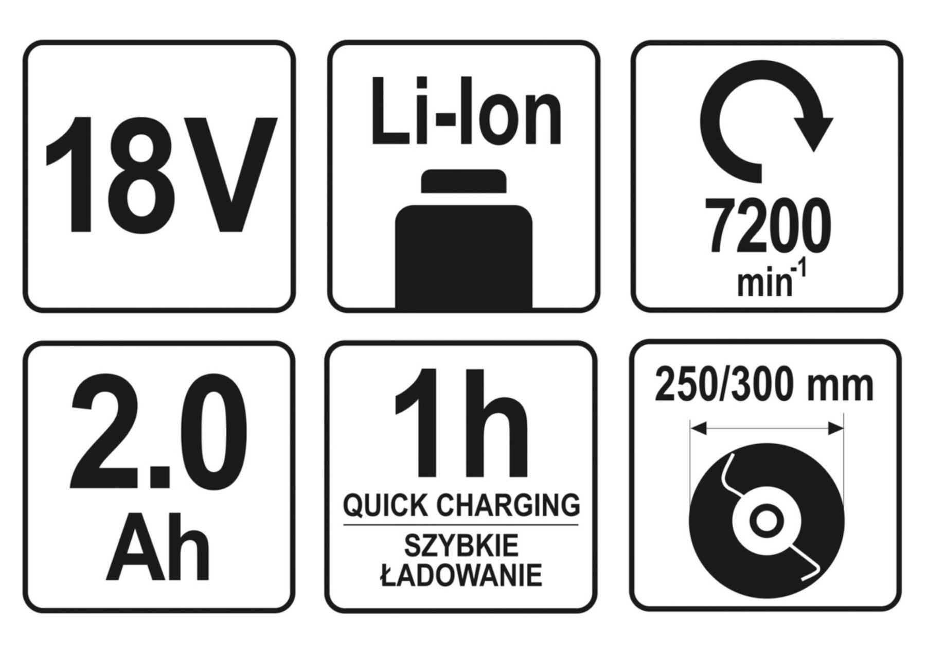 YATO Газонокосарка акумуляторна Li-Ion 18 В, 2 АГод, обрізний діап. Ø=25/30 см, з зарядним пристроєм